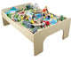 Putting together the train tracks by themselves helps stimulate your child's creativity and hands-on skills. After assembly, watching the train run will give a full sense of accomplishment. It is good for open ended creative play both for individuals and groups, also creates parent-child quality time. Made from high quality wood and non-toxic paint for safe children's play. It measures 99*30.5*41 cm